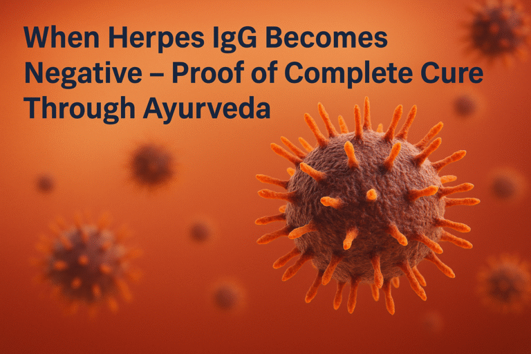 Ayurveda offers a complete herpes cure through Rasayana therapy, where true healing is confirmed only when IgG levels drop below the reference range. This natural process restores immune balance, ends viral activity, and achieves full IgG normalization with lasting results.