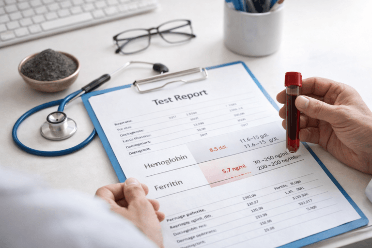 Kasis Bhasma for iron deficiency anemia helps improve hemoglobin, increase ferritin and support patients with poor tolerance to modern iron through a personalized Ayurvedic treatment approach.